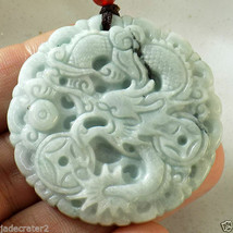 Big Carved White w Green Roaring Dragon Protect Treasury Jade Necklace