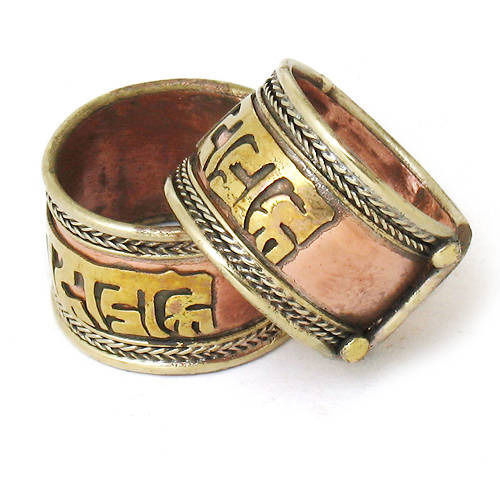 This combination of 3 metals is also used for shamanic purposes in warding off negative spirits increasing spiritual power. Wearing this ring bestows all the blessings protection of the Om Mani Padme Hum mantra. This mantra is also known as the "Great Six Syllable Mantra" as the Tibetan Buddhist "Mantra of Compassion.