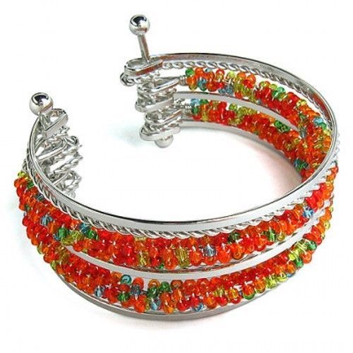 Made with steel memory wire, these bracelets can be wrapped around any wrist. Accented with colorful crystal beads.