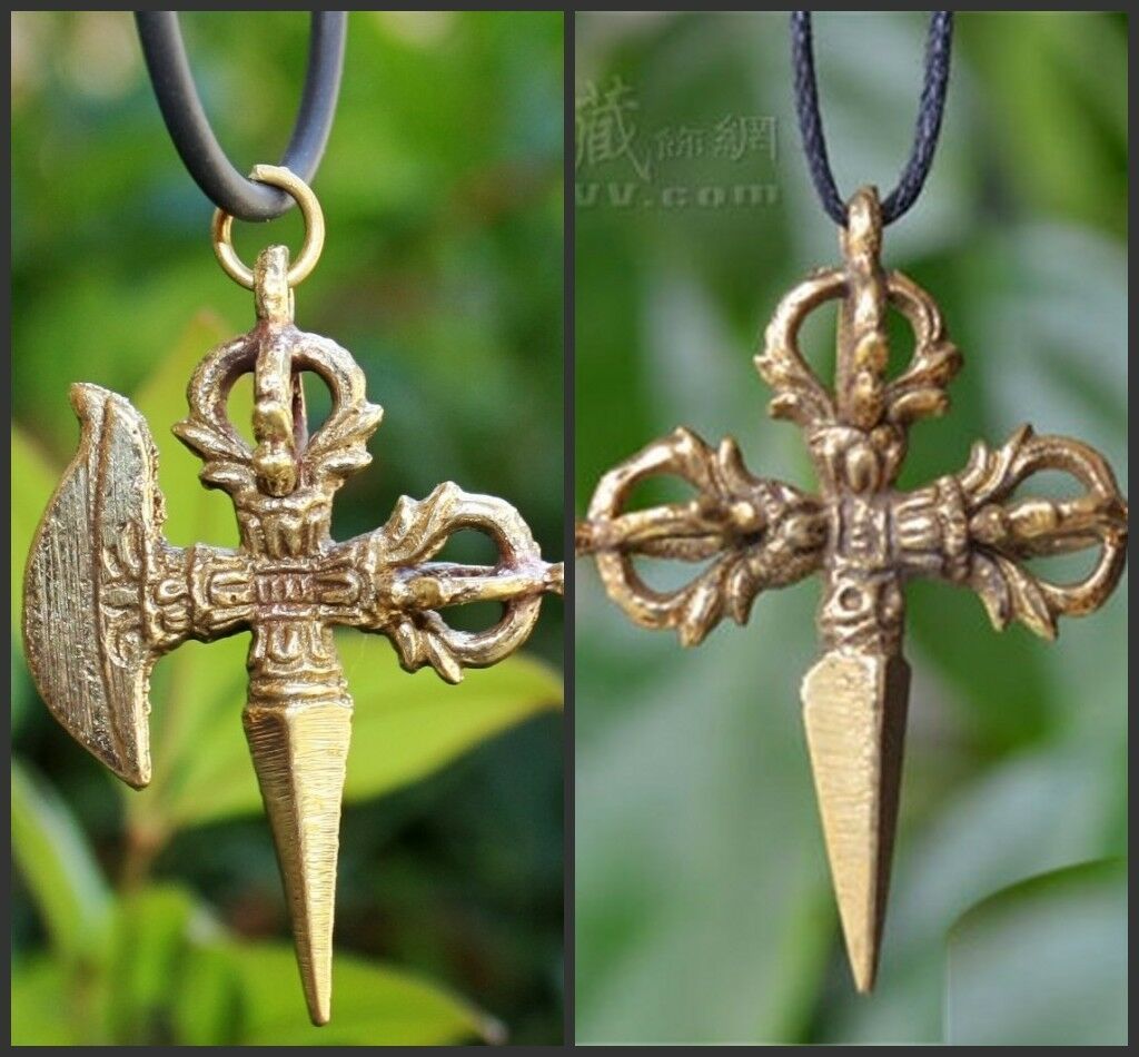 Wholesale 2pcs Vintage Tibetan Brass Charm Tantric Protector Eye Pestle 3 Cross VAJRA DORJE Thunderbolt Amulet Necklace