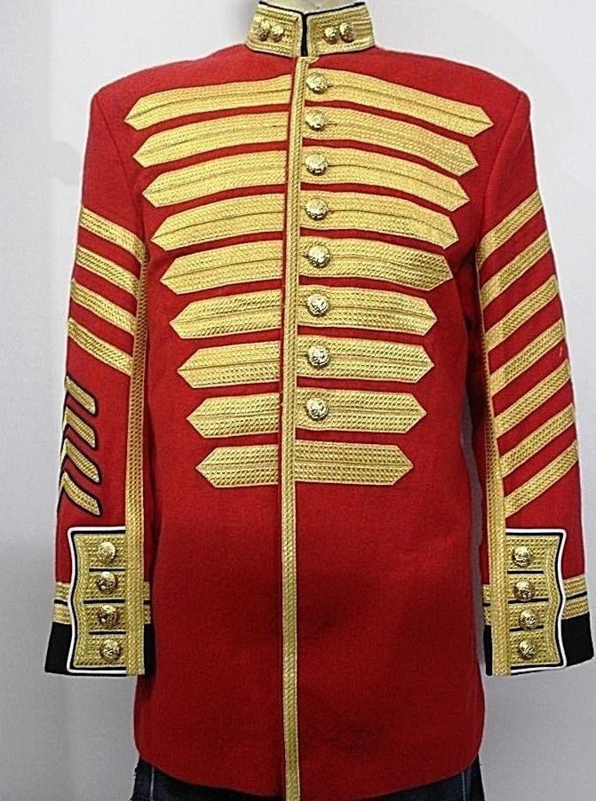 British Grenadier Guards Drum Major Tunic Red Blazer Wool Gold Braid and Buttons