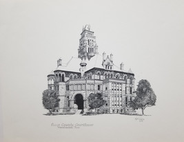 Ellis County Courthouse is a hard to find open edition print by Hugh Riker. It features the Ellis County Courthouse in Texas in a pen and ink rendering.