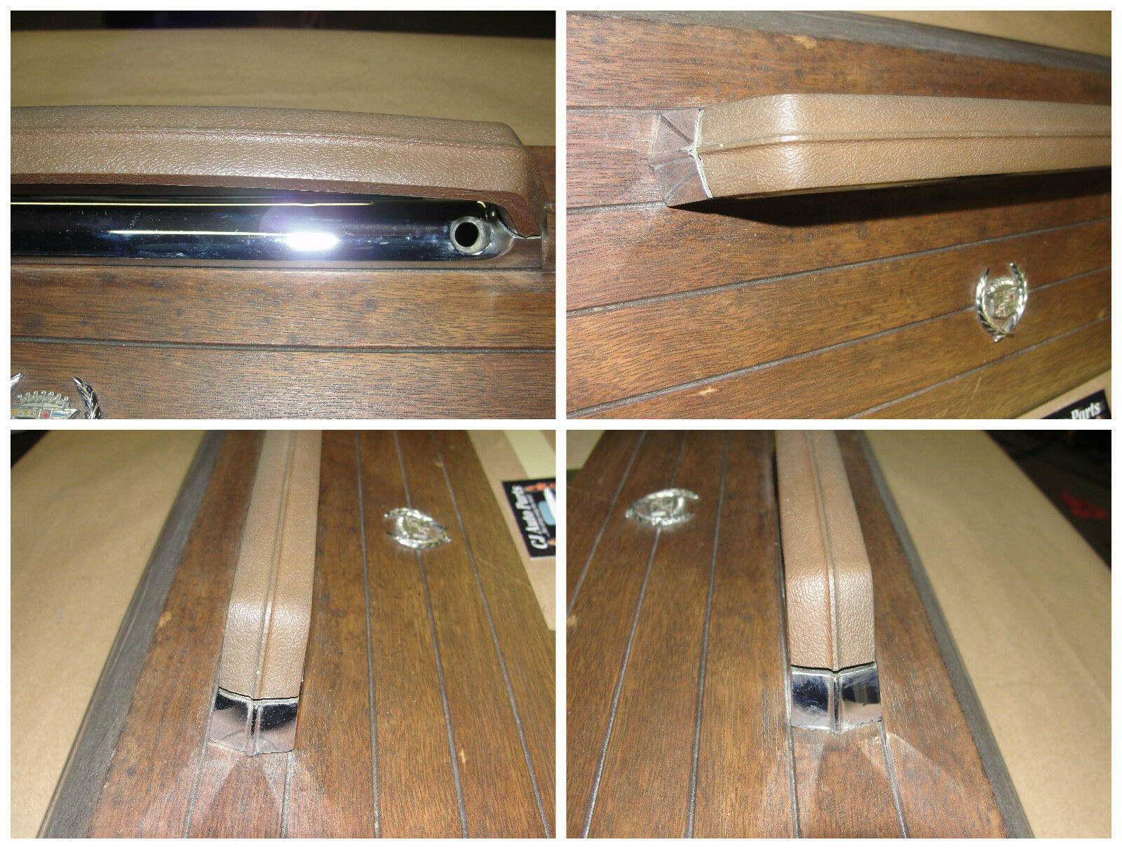 66 Cadillac Fleetwood Brougham LEFT REAR UPPER DOOR PANEL PULL HANDLE WOODGRAIN
