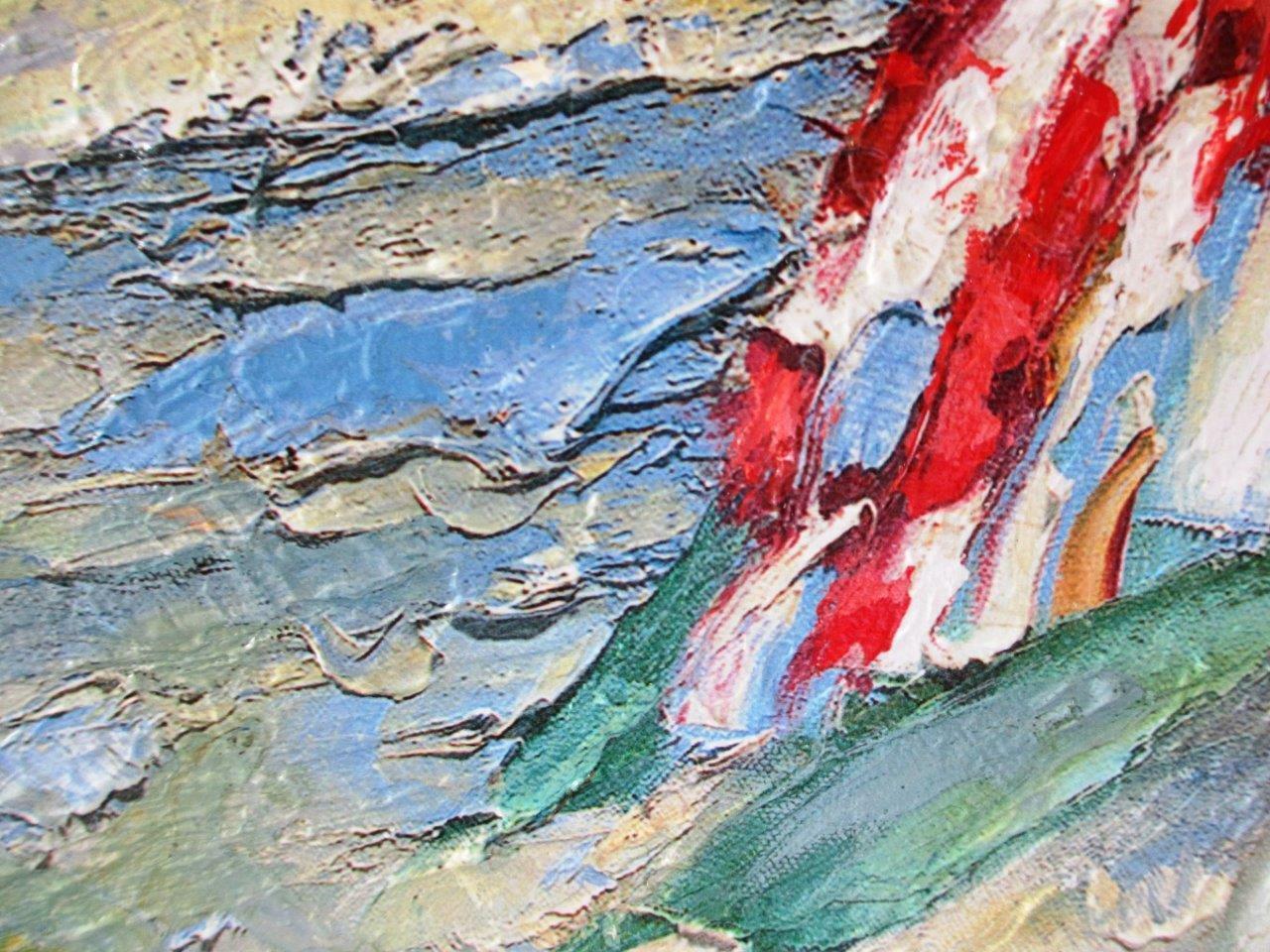 It is almost indistinguishable from the original oil (except for the number). The original edition was done in 2004 as a 30x40. This is a proprietary product that is created directly from the original oil of the same name. Heavily embellished, signed and limited in number. It's indistinguishable from the original oil.