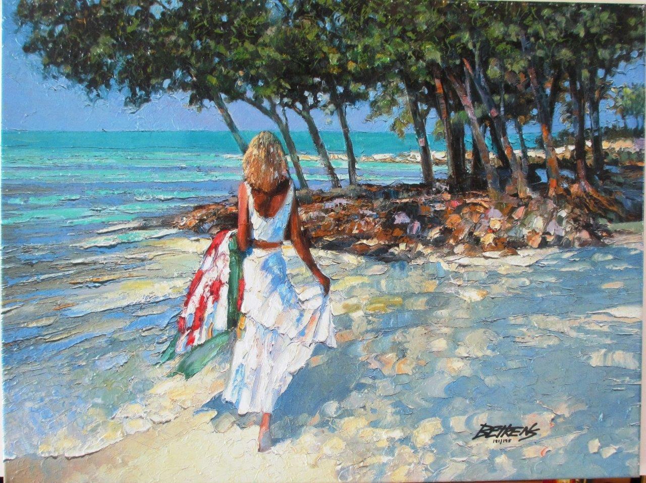 Howard Behrens "My Beloved" Lady strolling the beach embellished