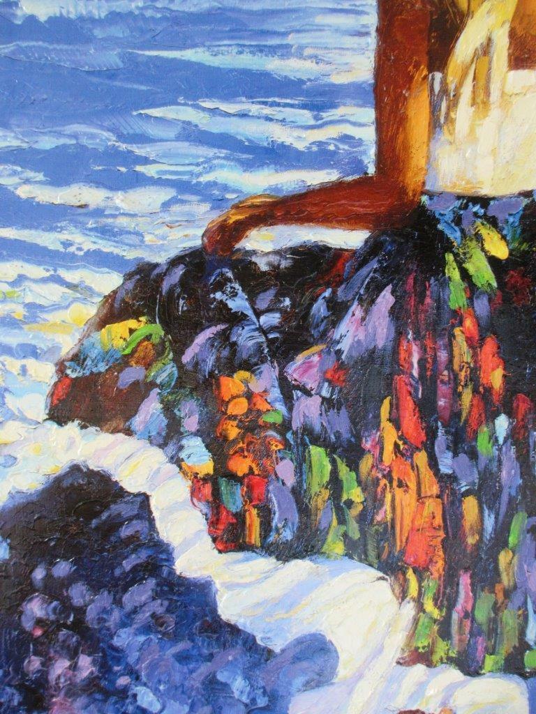 Limited Edition, Hand Signed and Numbered gorgeous Heavily Embellished Giclee on Stretched Canvas entitled "My Beloved by the Sea" by Howard Behrens. Intensely texturized/embellished.