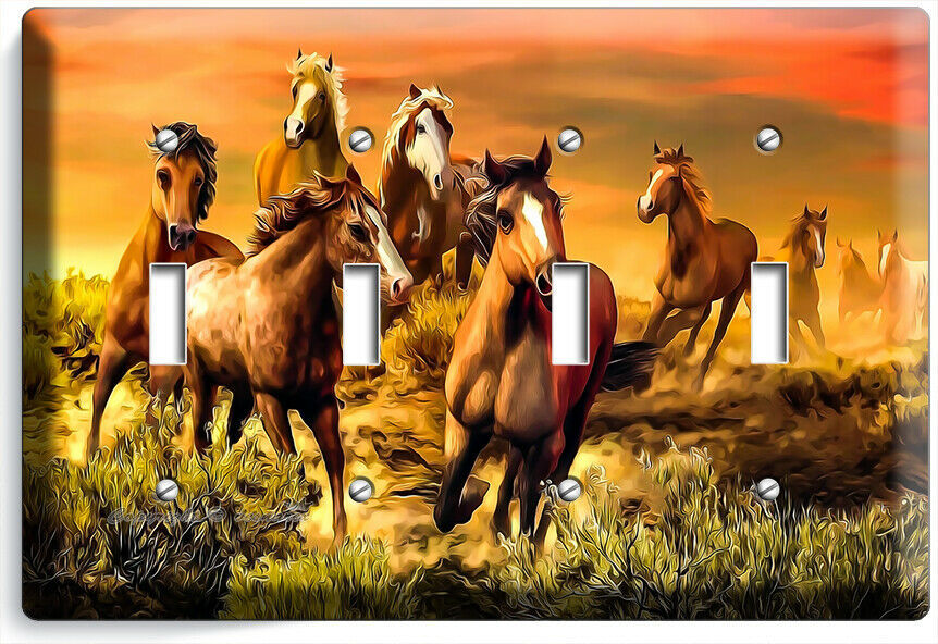 WILD PRAIRIE HORSES BEAUTIFUL SOUTHWEST SUNSET 4GANG LIGHT SWITCH PLATE HD DECOR