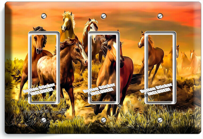 WILD PRAIRIE HORSES BEAUTIFUL SOUTHWEST SUNSET 3 GFI LIGHT SWITCH PLATE HD DECOR