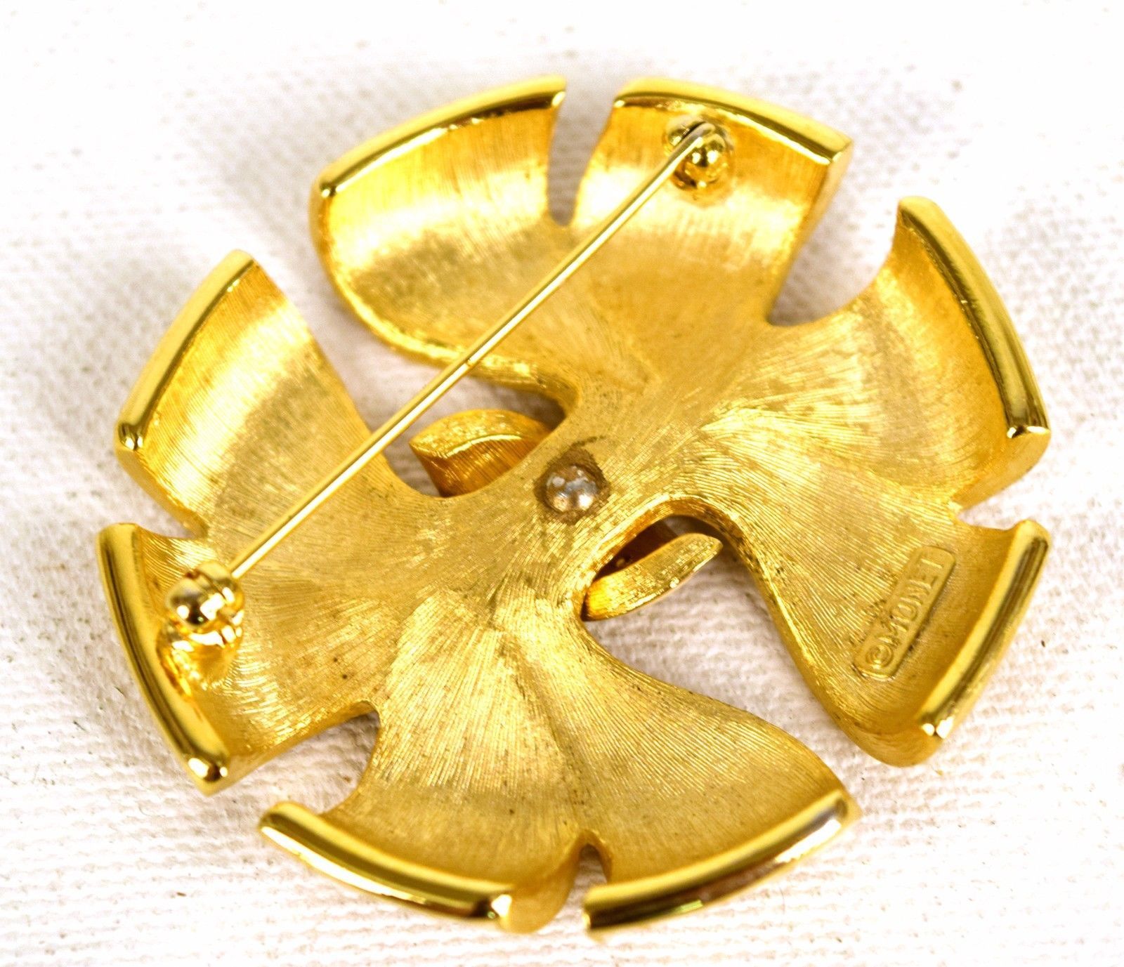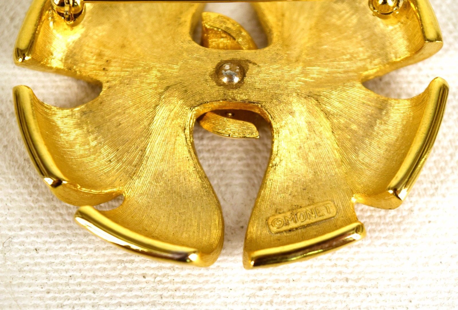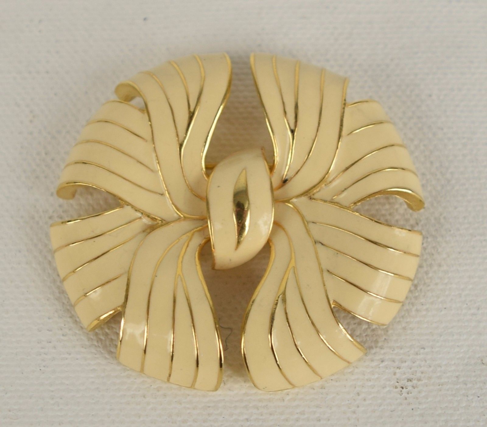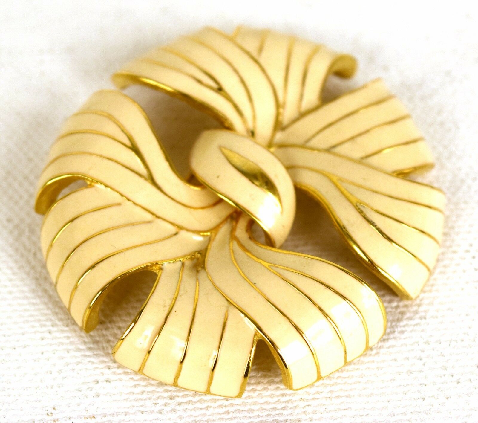 Monet Brooch Enamel Cream Gold Tone Ribbon and 50 similar items
