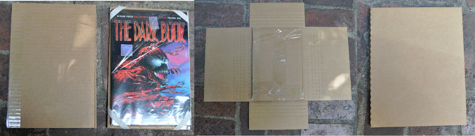Comics are shipped in a box sandwiched between multiple pieces of cardboard for protection. See photo for reference.
