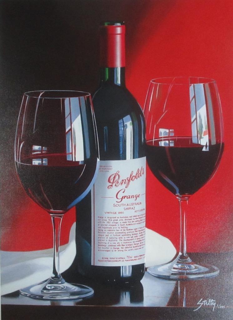 Thomas Stiltz "Pride of Australia" Red Wine Bottle Giclee Canvas Hand Signed #1