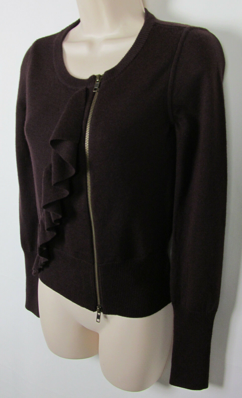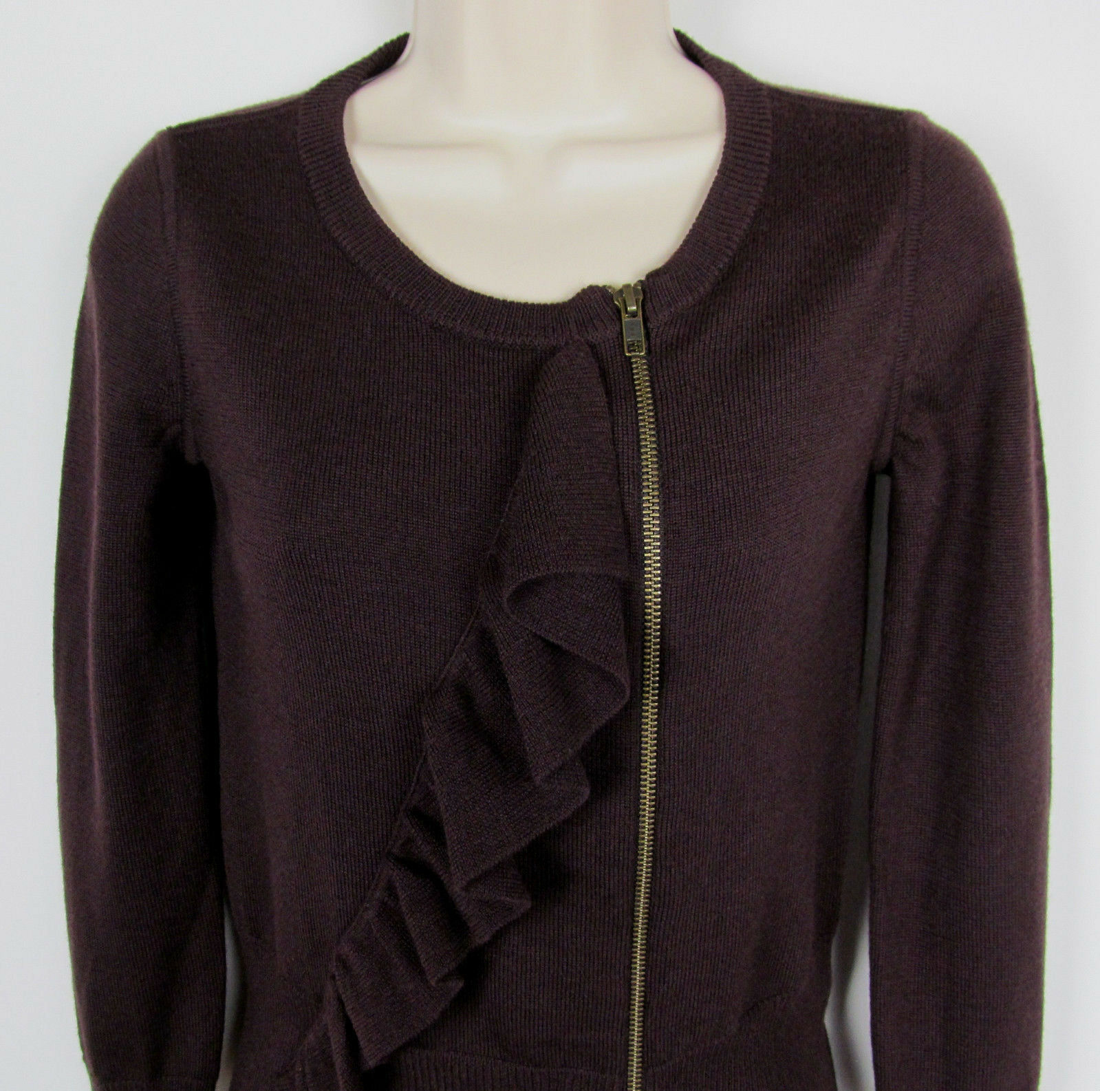 J. Crew 100% Merino wool sweater ruffles zipper decorations Plum Womens Size XS
