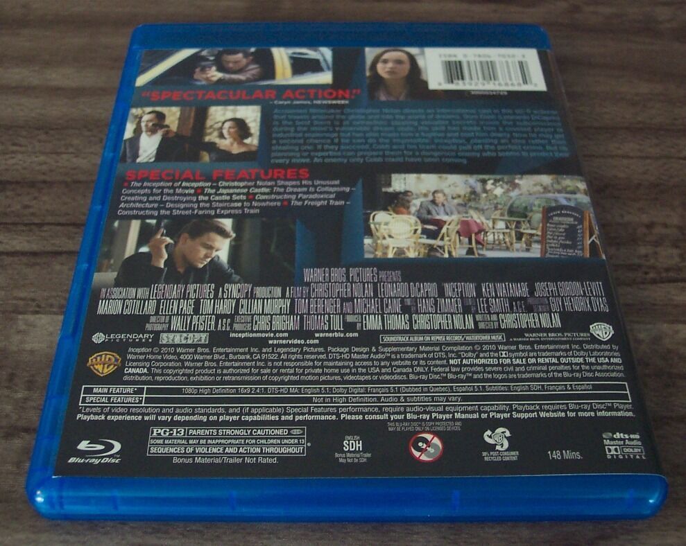 This is a INCEPTION Blu-ray Disc.It has a runtime of 148 Minutes. It is in great condition. Only watched once. Winning bidder to add $3.00 shipping in the US (International will be more. Combine auctions to save on shipping. Please contact me if you need to make other payment arrangements