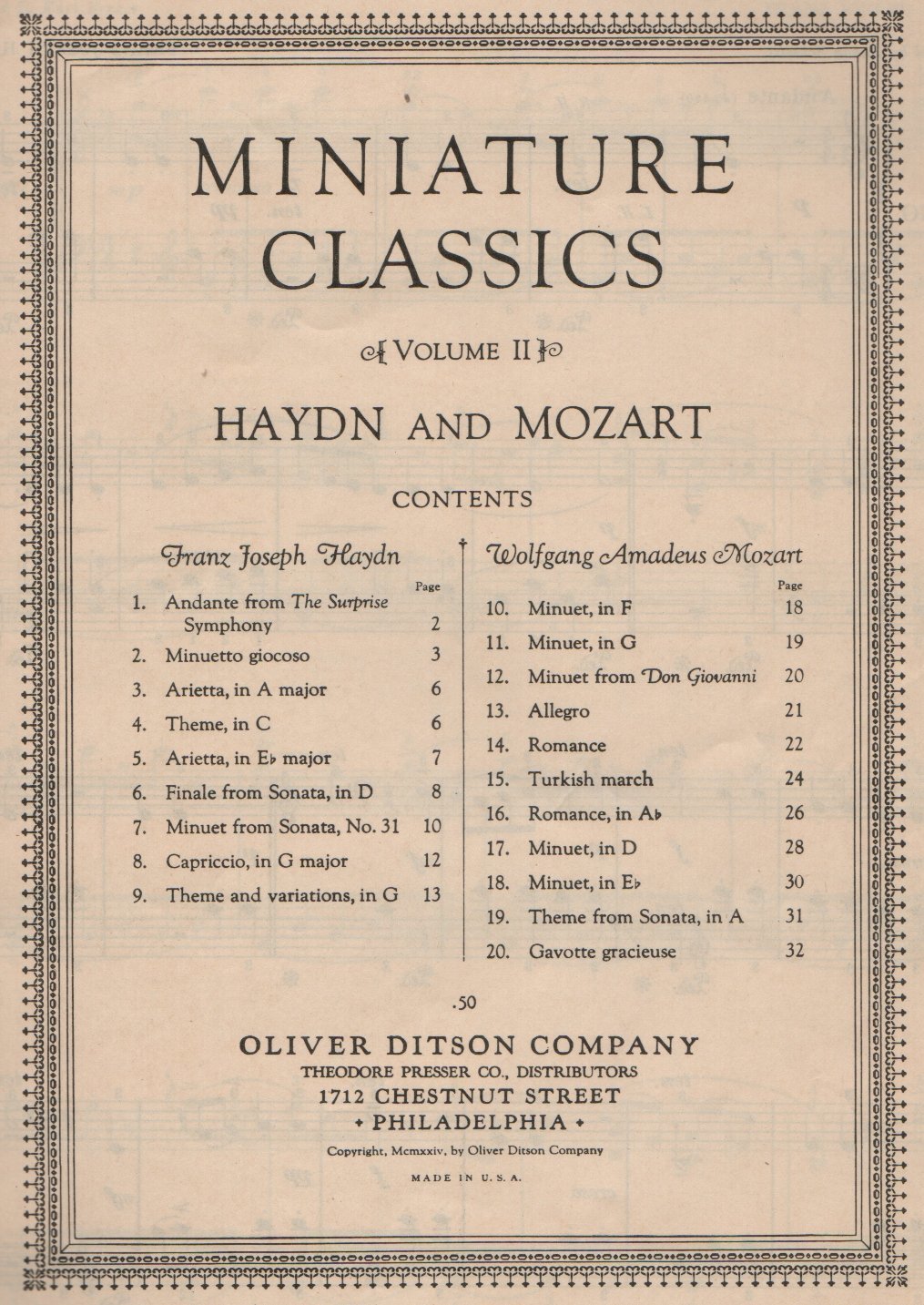 Minature Classics Volume II Haydn and Mozart [Sheet music]