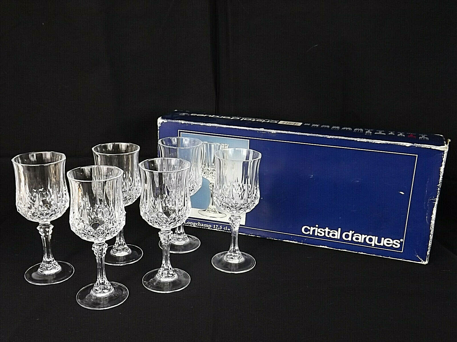 Up for sell are six 17.5 Cristal D'arques 17.5 CL Footed Wine Glasses