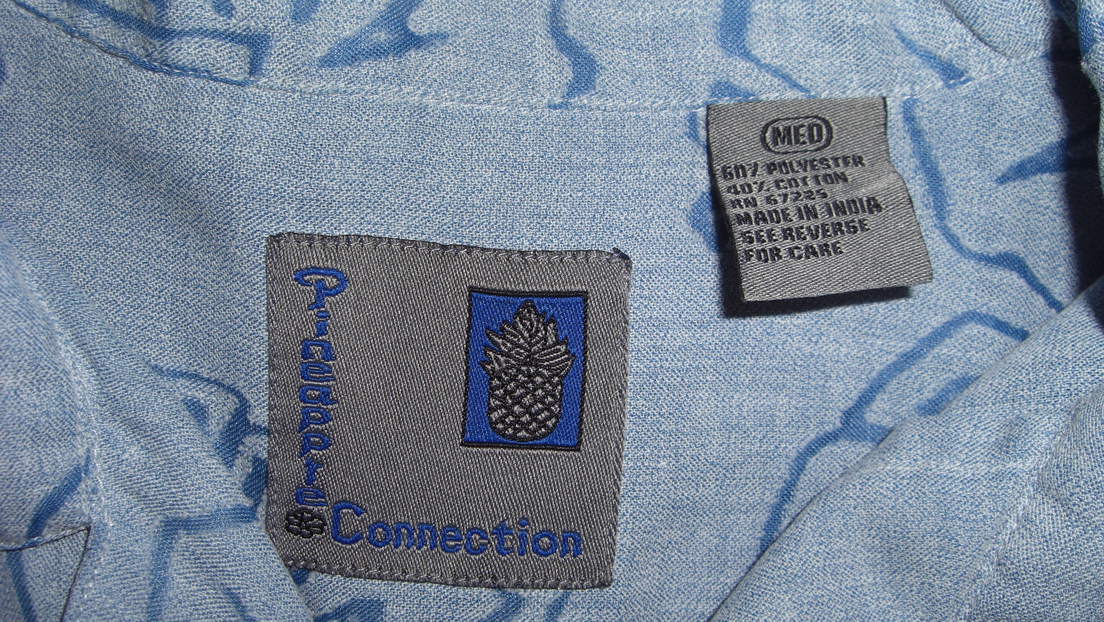 Pineapple Connection Hawaiian Shirt Two-Tone Blue Floral Size Medium