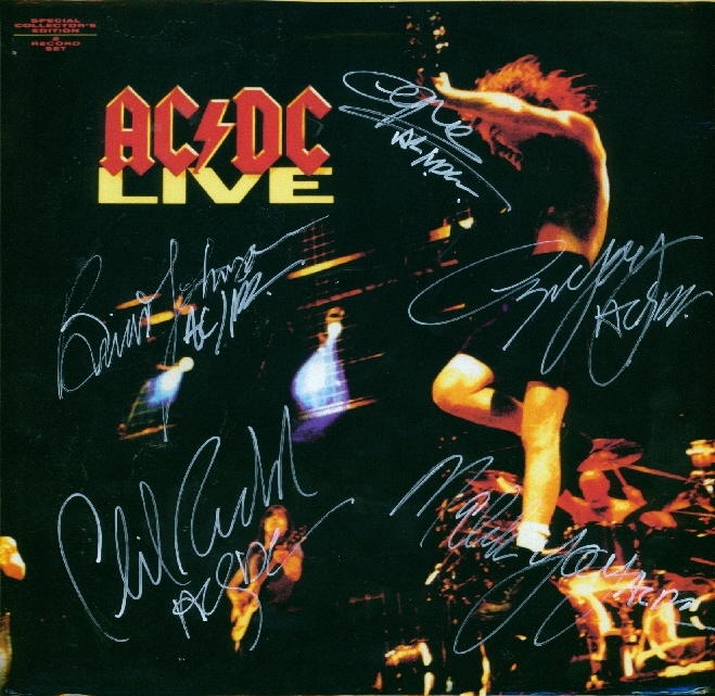 Autographed in person by: Brian Johnson, Angus Young, Malcolm Young, Cliff Williams, and Phil Rudd