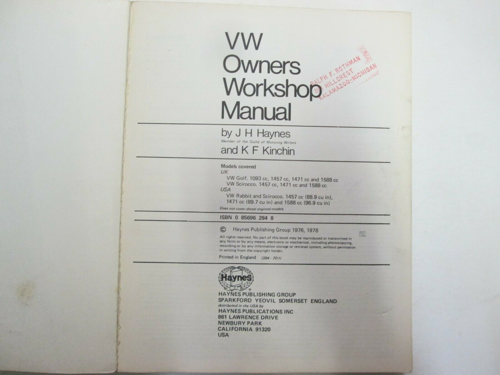 1974-1979 Haynes VW Rabbit Scirocco Gasoline Engine Owners Workshop Manual OEM