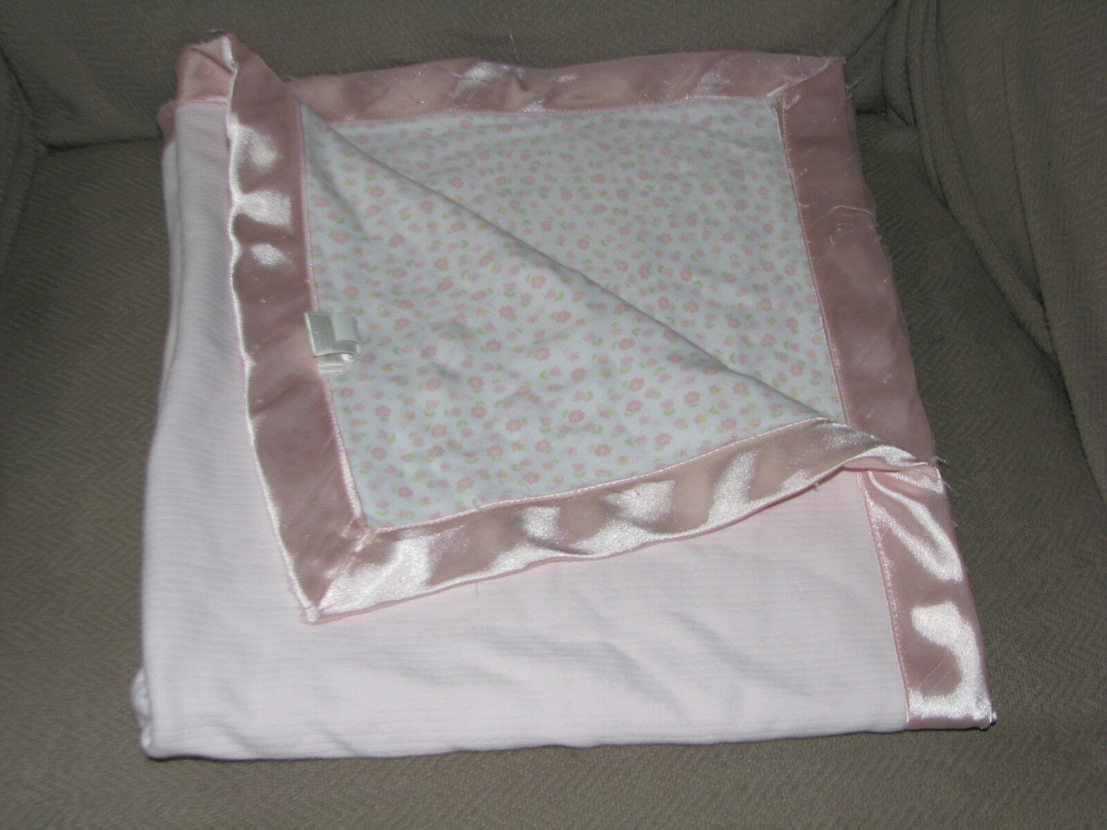 First Moments Pink Blanket Sweet Girl w/ Flowers Cotton Satin Butterfly 30 x 30