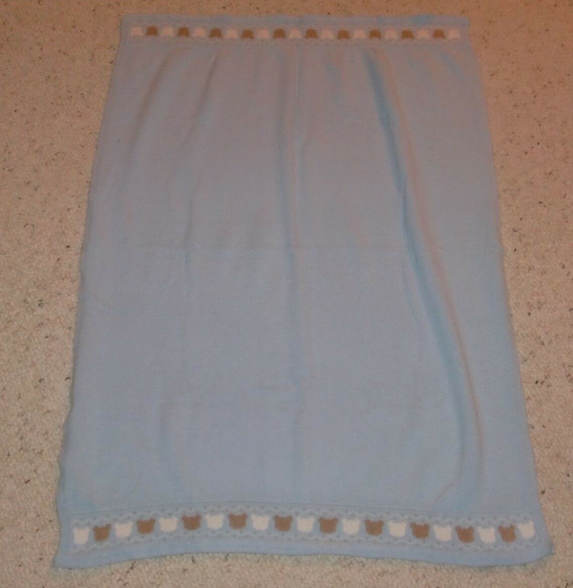 Knit First Impressions Blue Teddy bear Sweater Baby Crib Blanket/Comforter