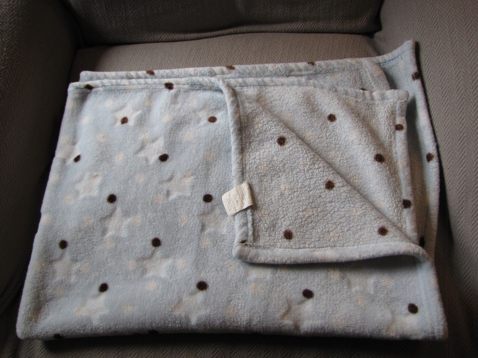 LITTLE BEGINNINGS BABY BOY BLUE BLANKET BROWN WHITE STAR PLUSH FLEECE