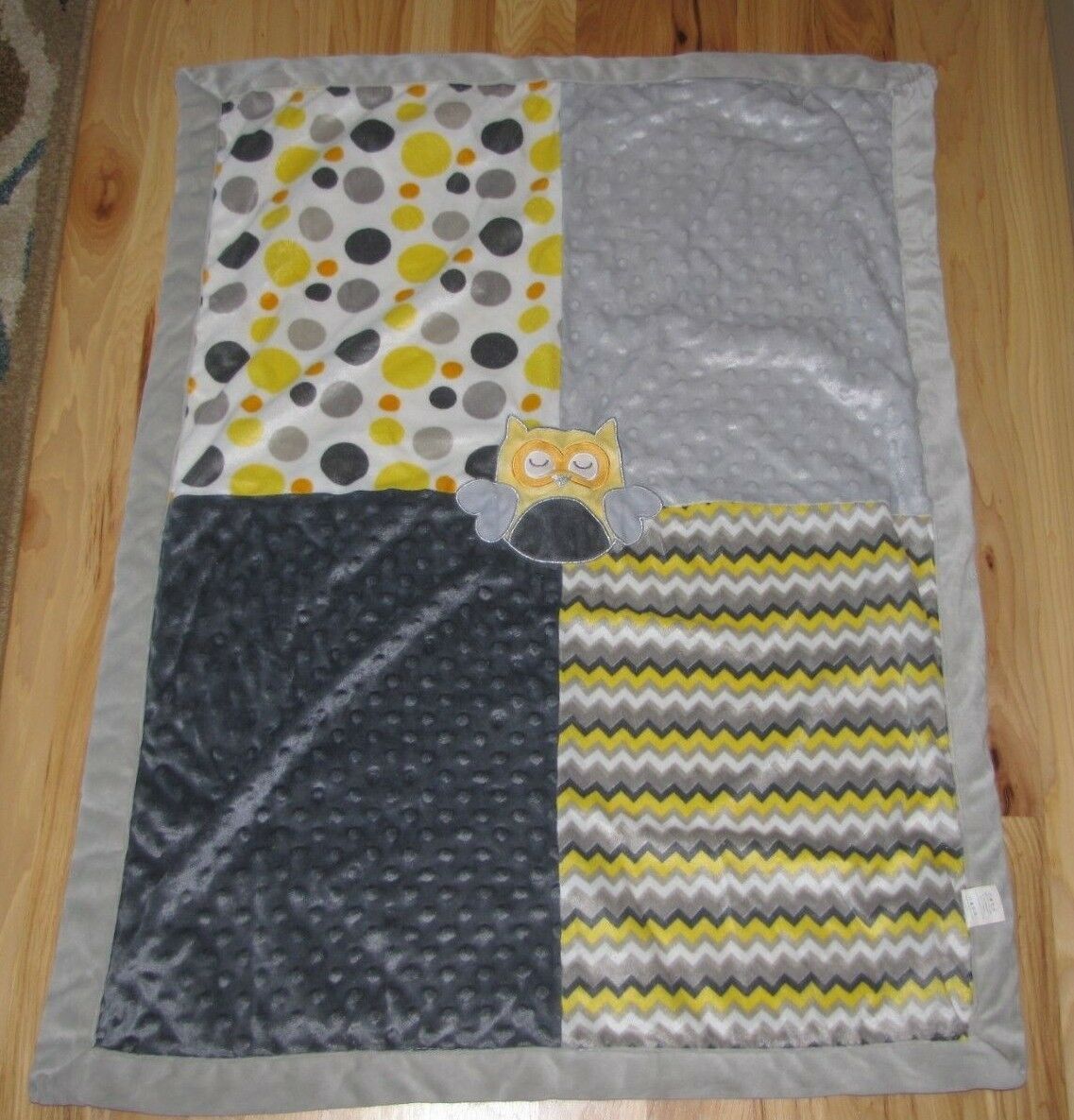 LITTLE BEGINNINGS YELLOW GRAY WHITE CHEVRON ZIG ZAG STRIPE OWL BIRD BABY BLANKET