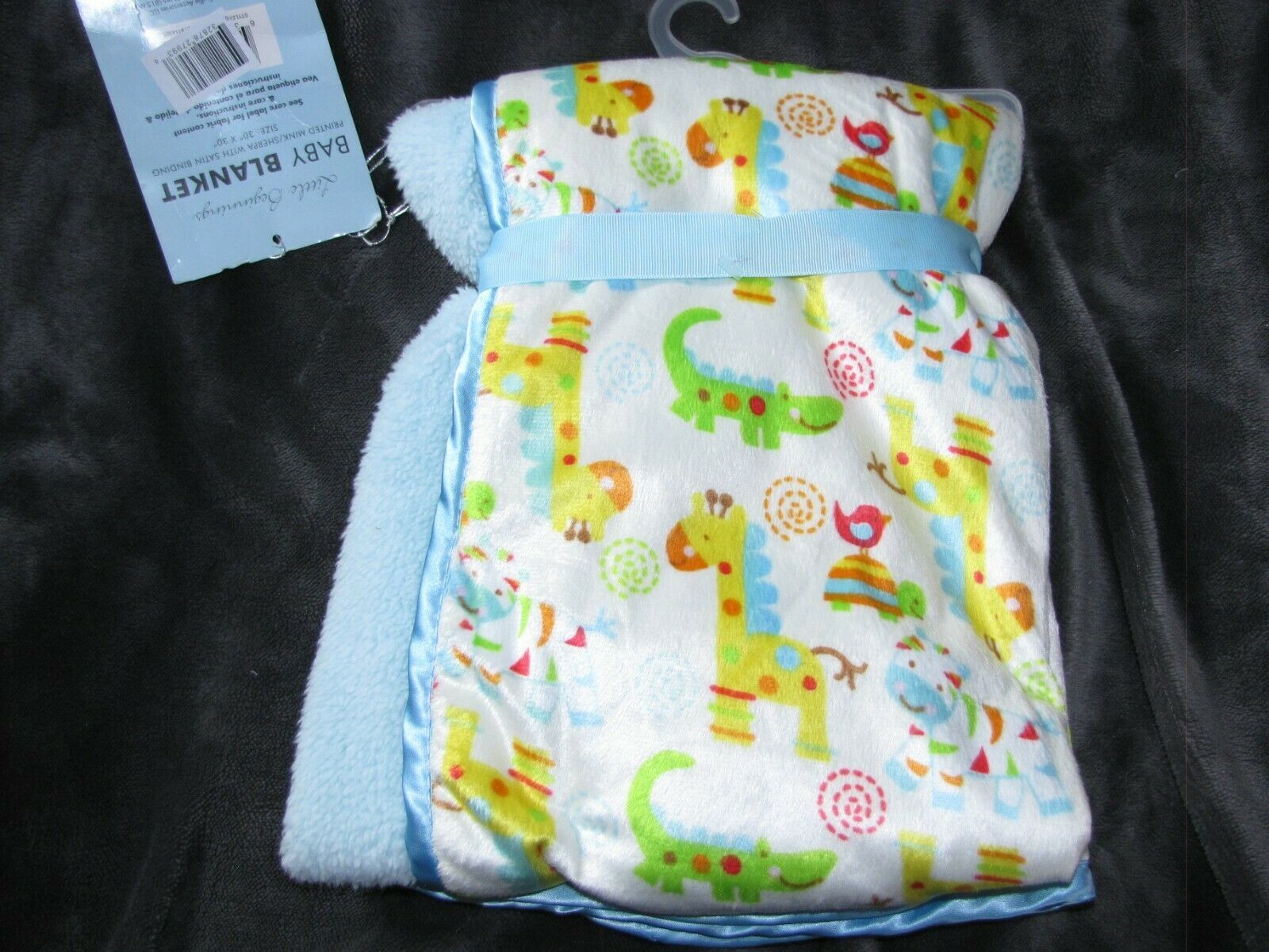 Little Beginnings Sherpa Minky Baby Blanket Blue Jungle Zoo Safari Animal Zebra