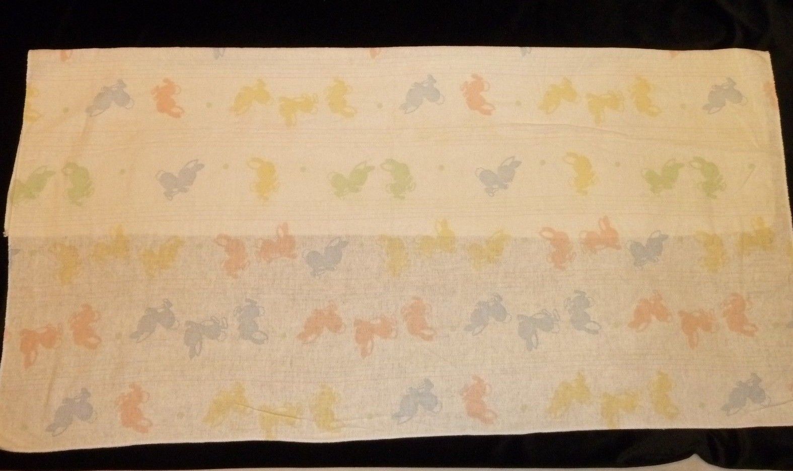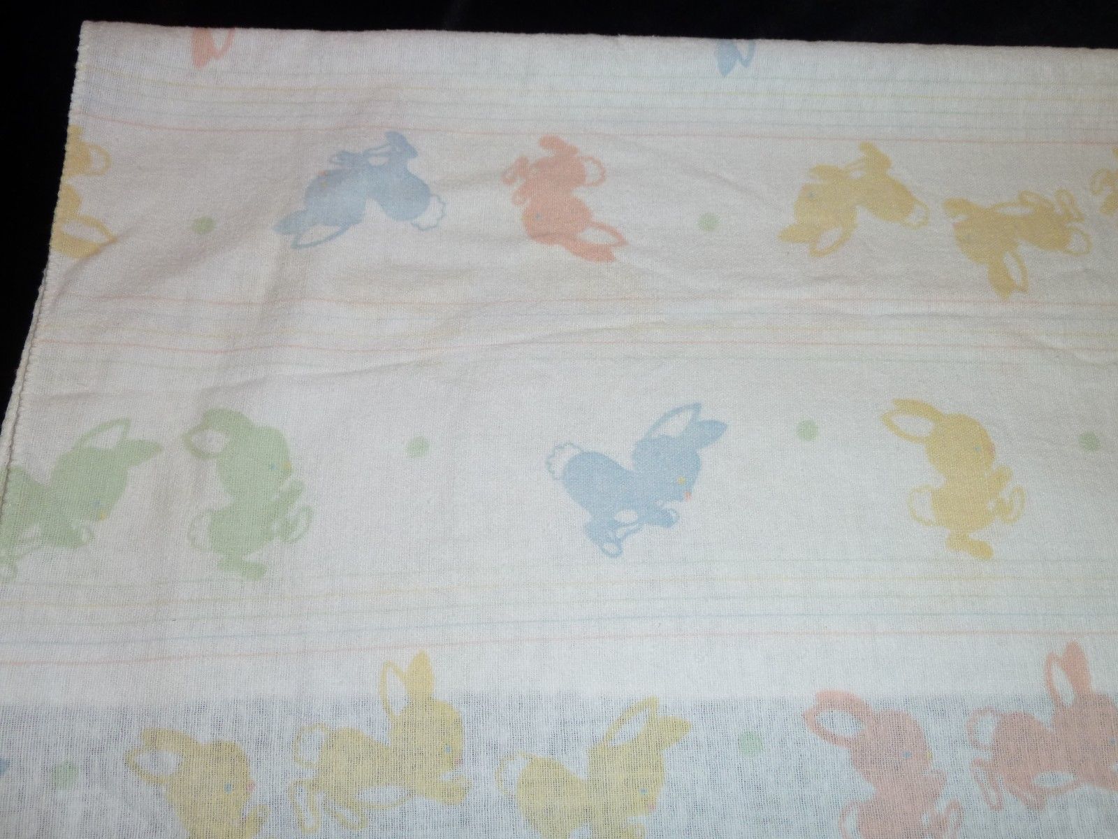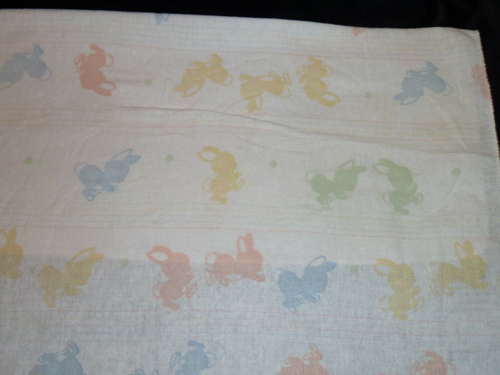 VTG BABY BLANKET COTTON FLANNEL RECEIVING PASTEL BUNNY RABBIT HOSPITAL STRIPE