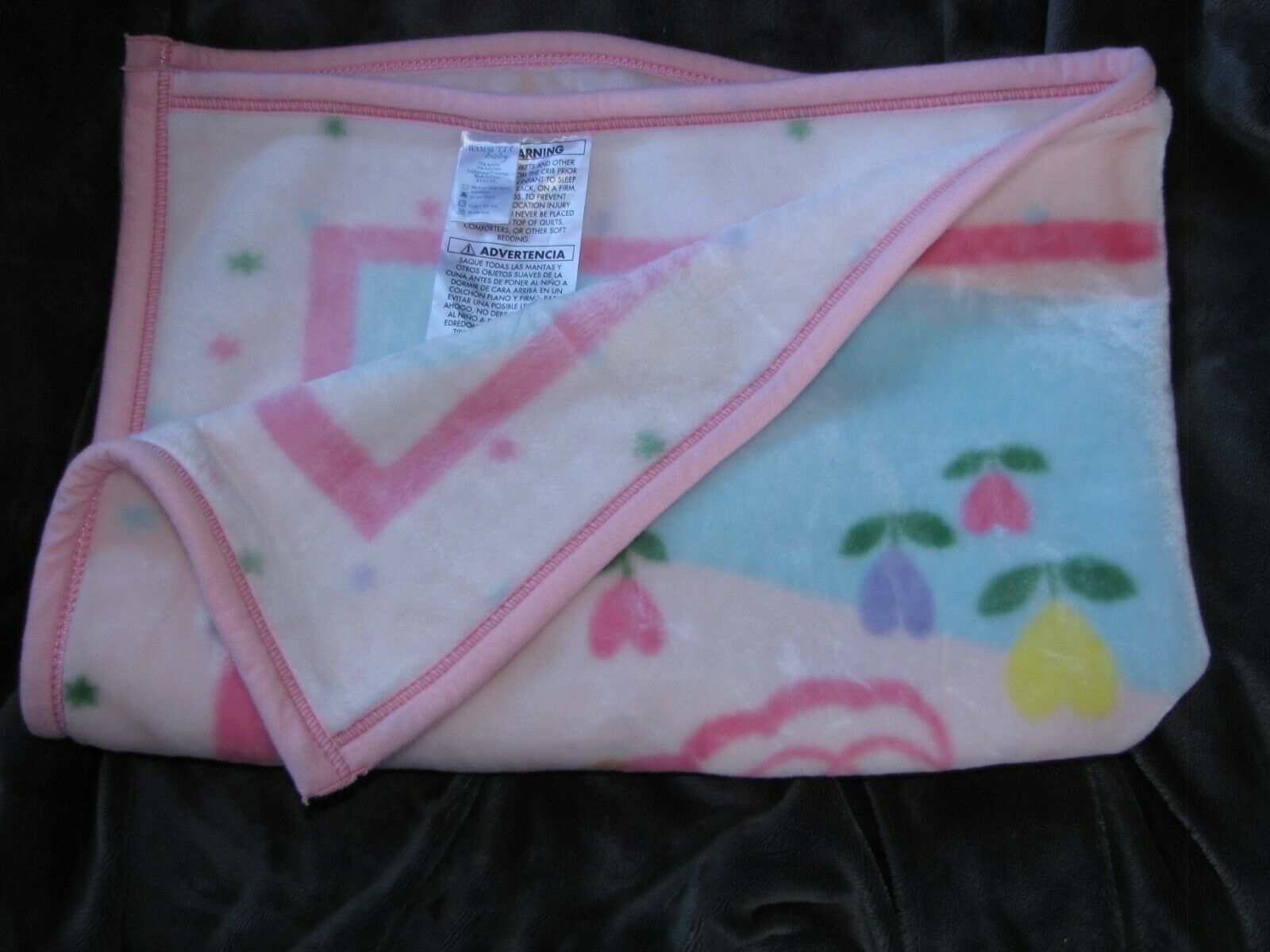 WAMSUTTA BABY FAIRY PRINCESS ANGEL TEDDY BEAR FROG FLOWER PINK PLUSH BLANKET