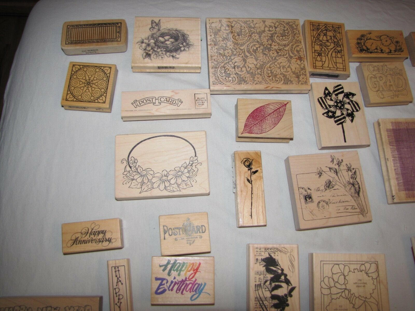 Lot Of 33 Wood Wooden Rubber Stamps Mixed and 50 similar items