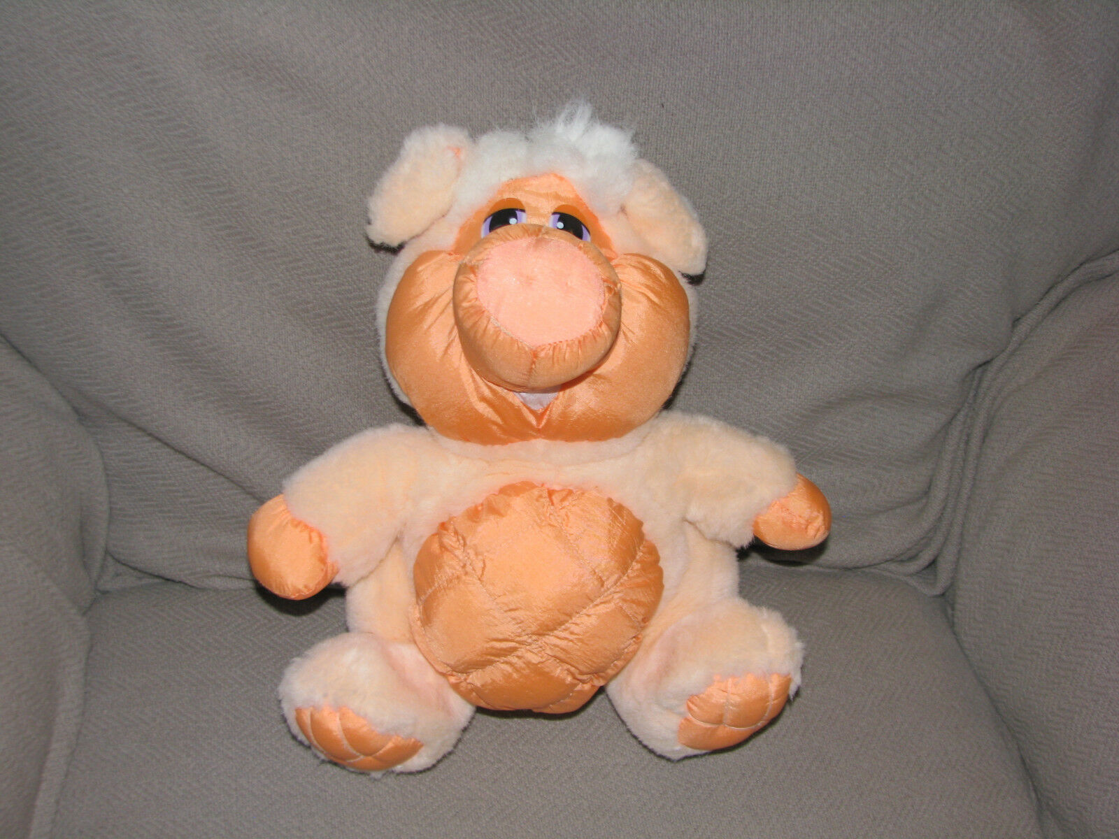 VINTAGE DANDEE DAN DEE STUFFED PLUSH PEACH NYLON PUFFALUMP PIG DOLL TOY ANIMAL