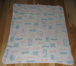 VINTAGE RECEIVING HOSPITAL BABY BLANKET COTTON FLANNEL PASTEL SHEEP LAMB GIRAFFE UNISEX 35" X 28" WHITE PINK BLUE