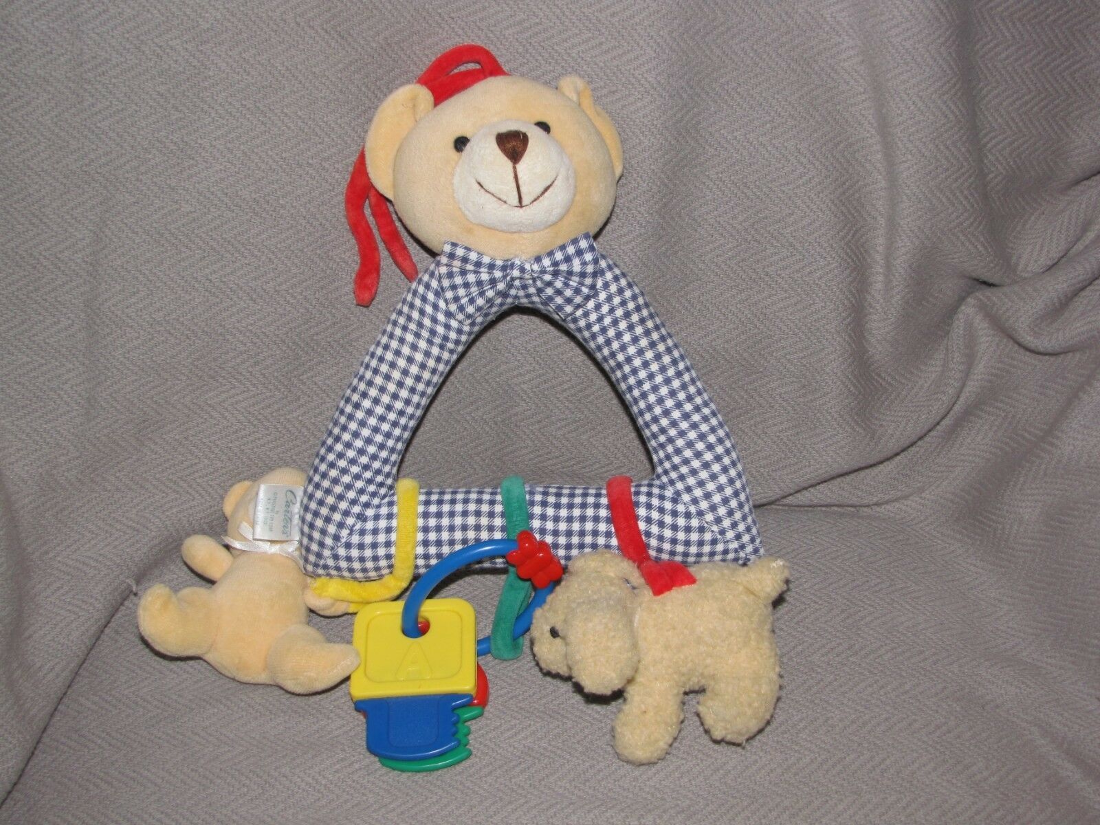 VTG CARTERS BLUE PLAID TRIANGLE BABY TOY TEDDY BEAR KEYS PUPPY DOG SQUEAK