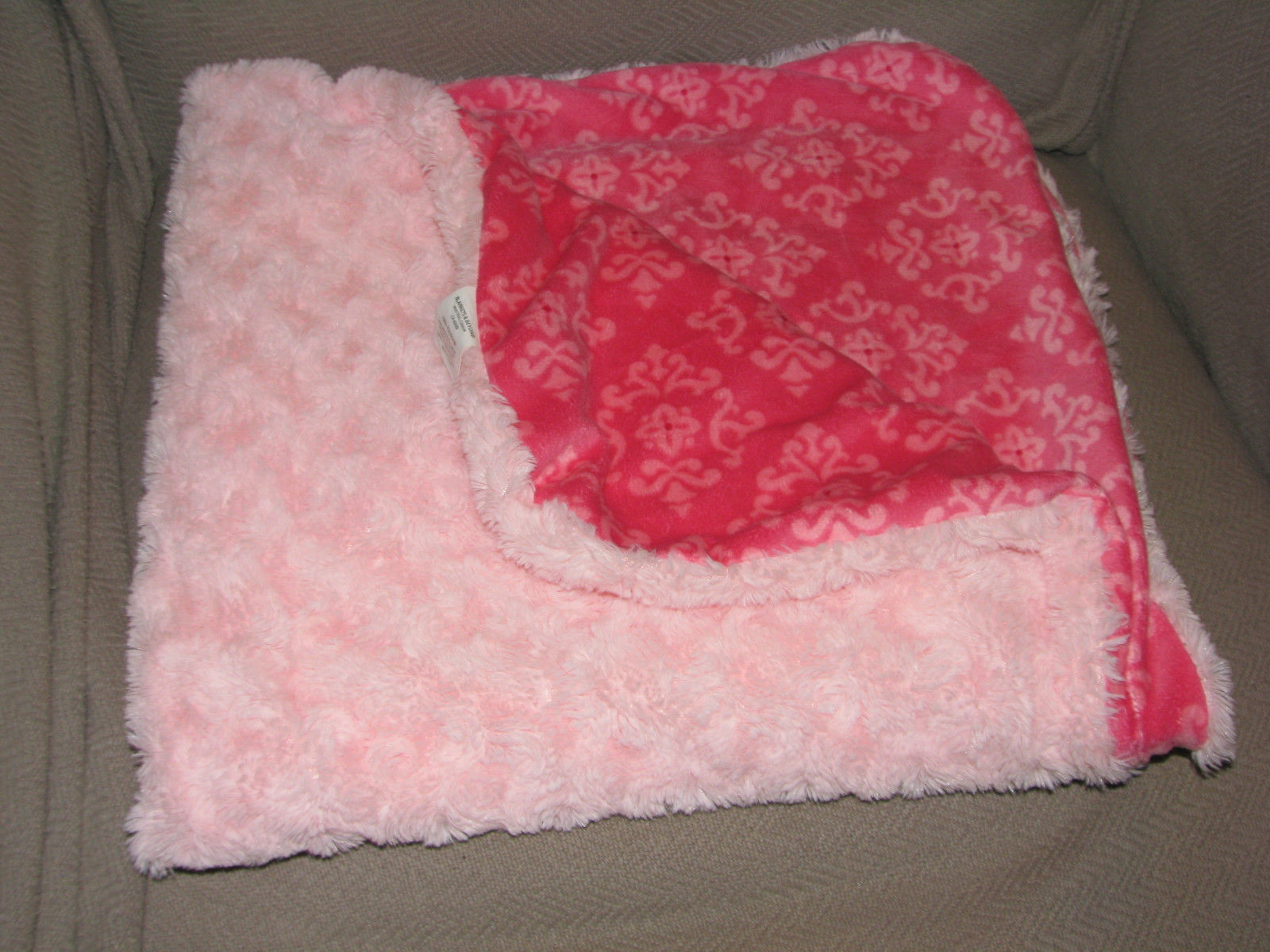 BLANKETS & AND BEYOND HOT PINK DAMASK SCROLL SWIRL ROSETTE FUR GIRL LOVEY