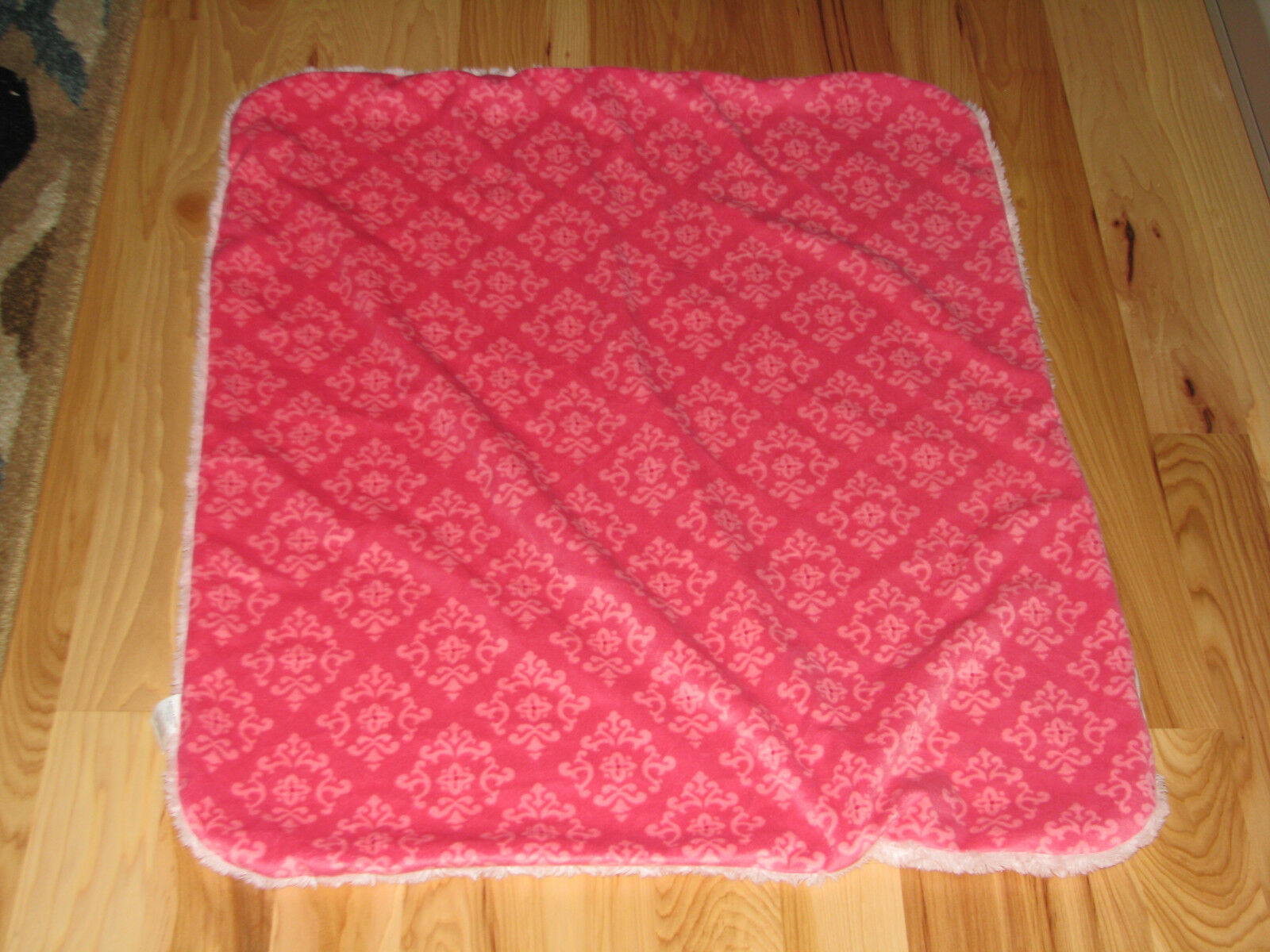 BLANKETS AND BEYOND HOT PINK DAMASK SCROLL SWIRL ROSETTE FUR GIRL LOVEY 32" X 30"