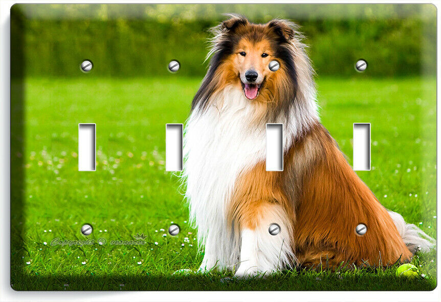 GORGEOUS ROUGH COLLIE DOG 4GANG LIGHT SWITCH WALL PLATE GROOMING PET SALON DECOR
