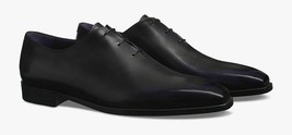 Handgefertigte echtes schwarzes Leder One Piece Herren Schnürschuhe 2019