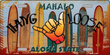 Hang Loose Surfboards Hawaii State Background Novelty Metal License Plate LP-783