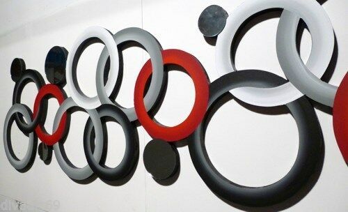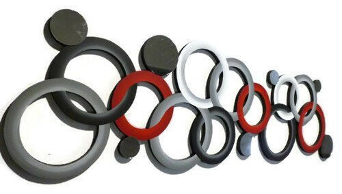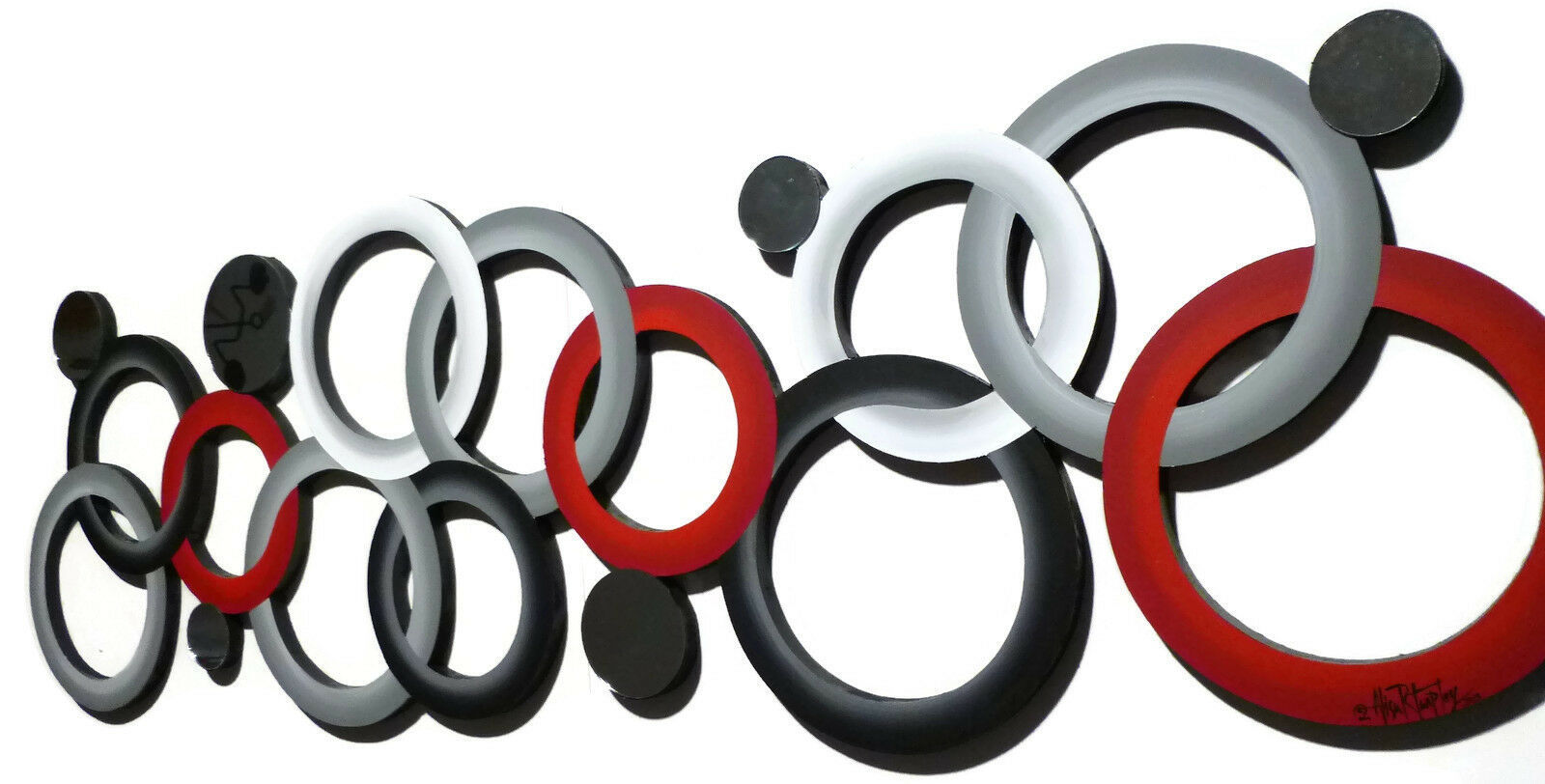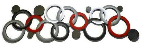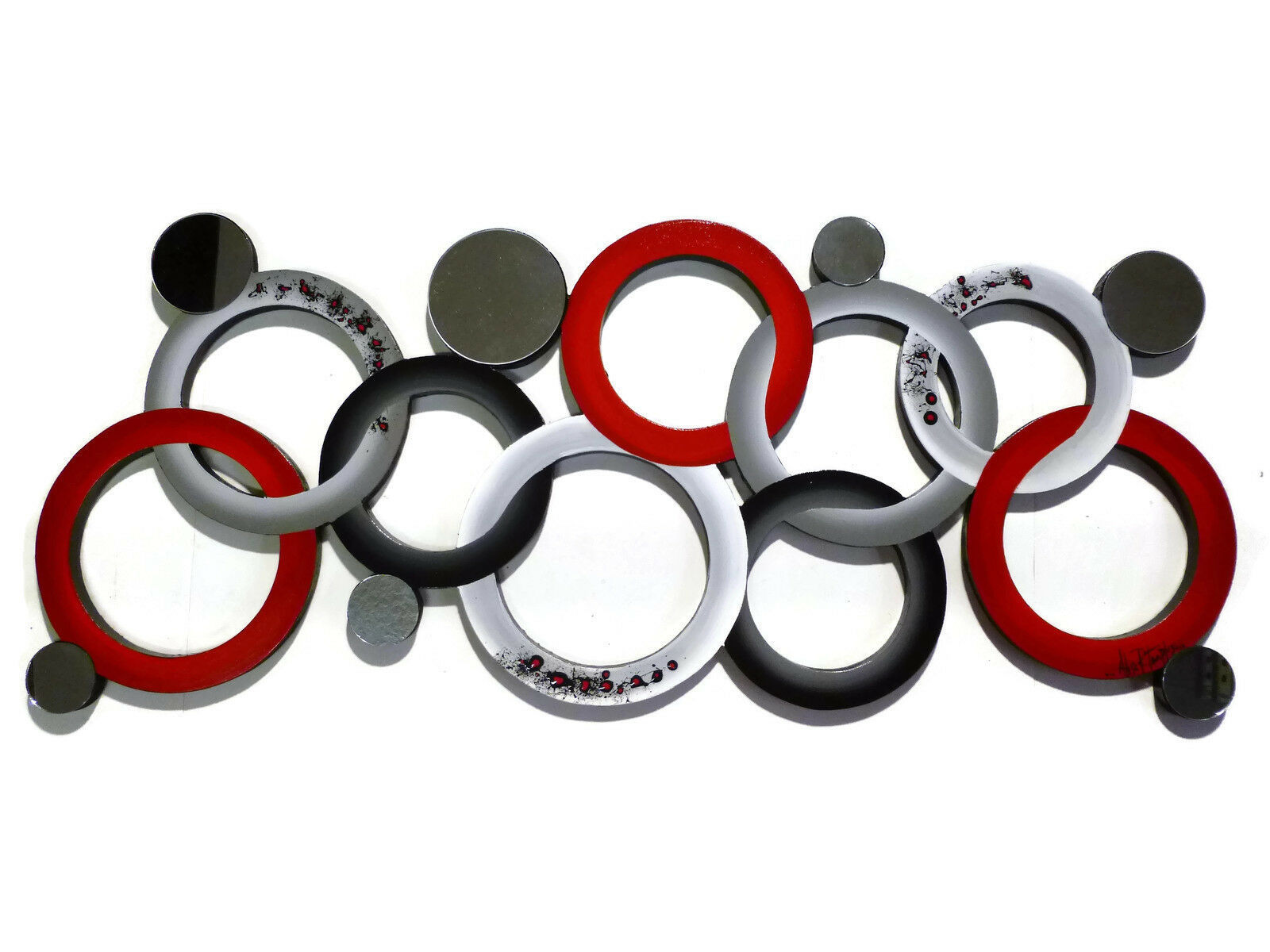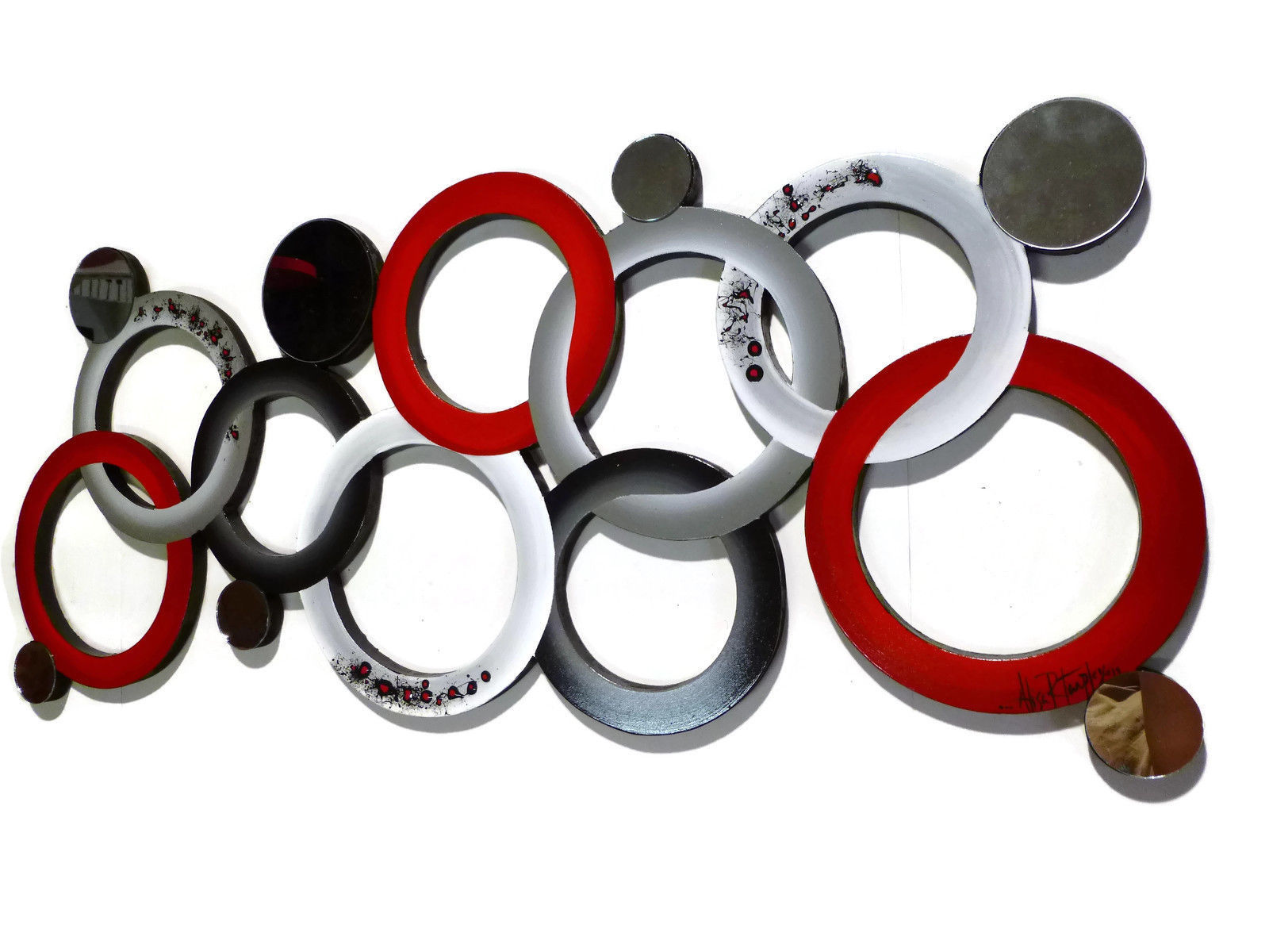 New Red Black Grey and White Circles Wall Sculpture with Mirrors!