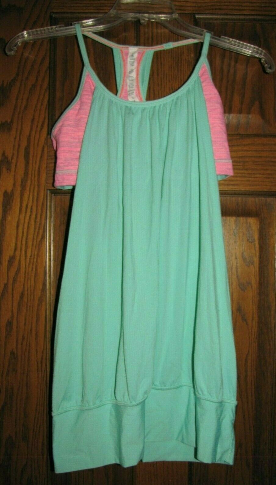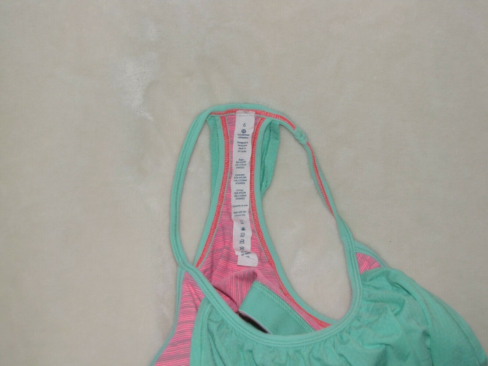 Lululemon No Limits Sports Bra Tank Top Mint Green Hot Pink Stripe Sz 6 EUC