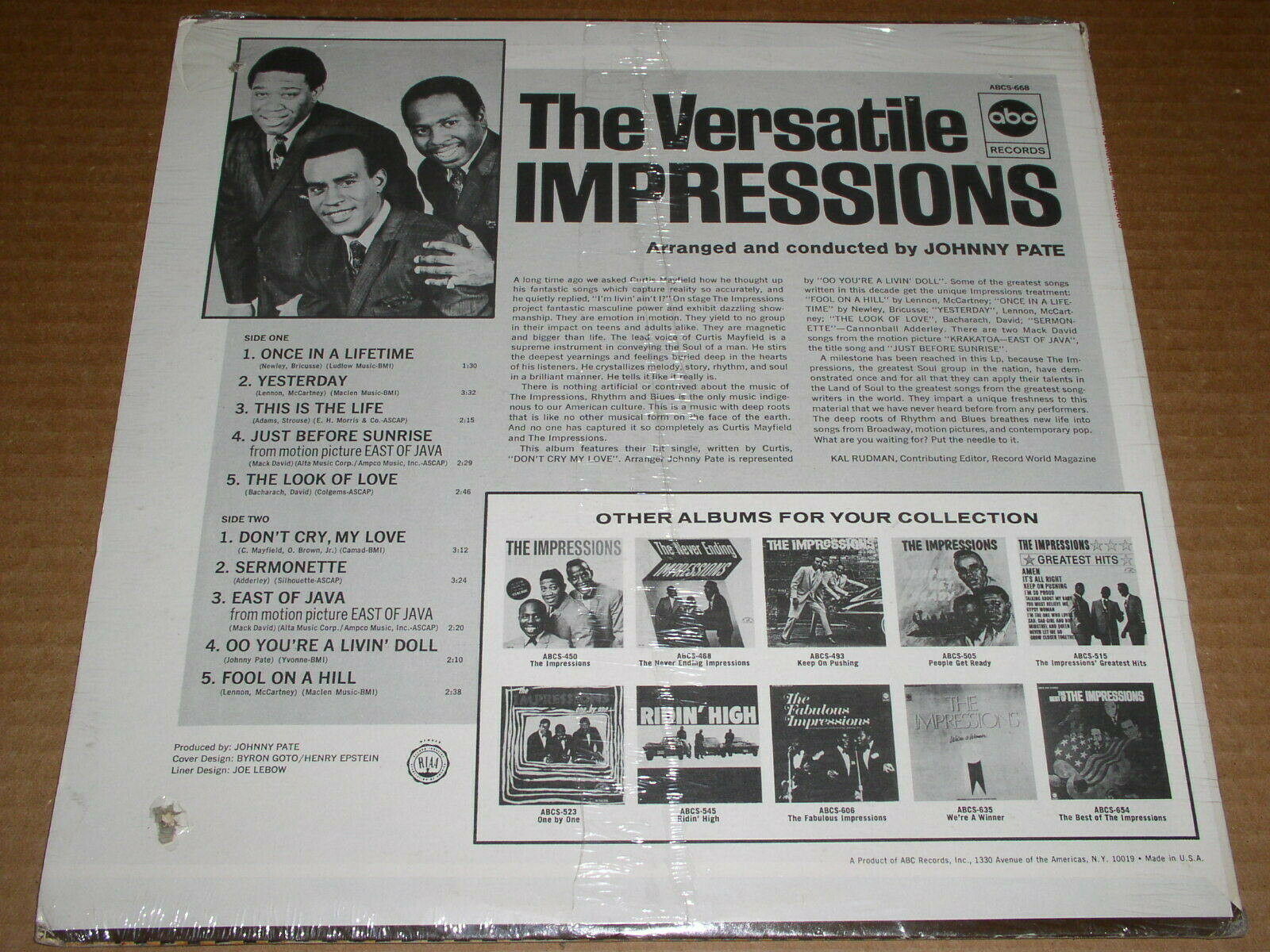 The Impressions Versatile Record Album Vinyl SEALED Vintage ABC Records