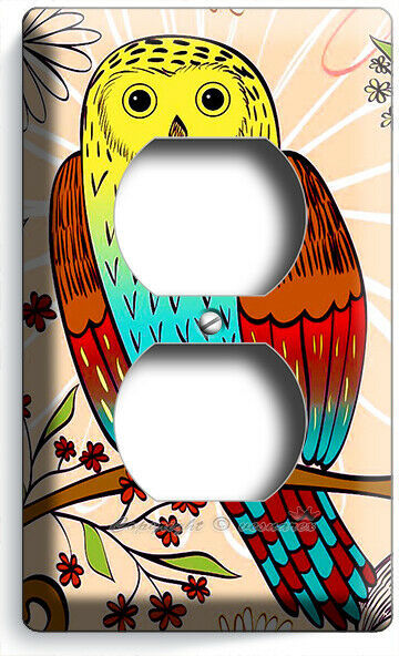 COLORFUL WHIMSICAL OWL TREE FLOWER OUTLET WALL PLATE NURSERY BABY ROOM ART DECOR