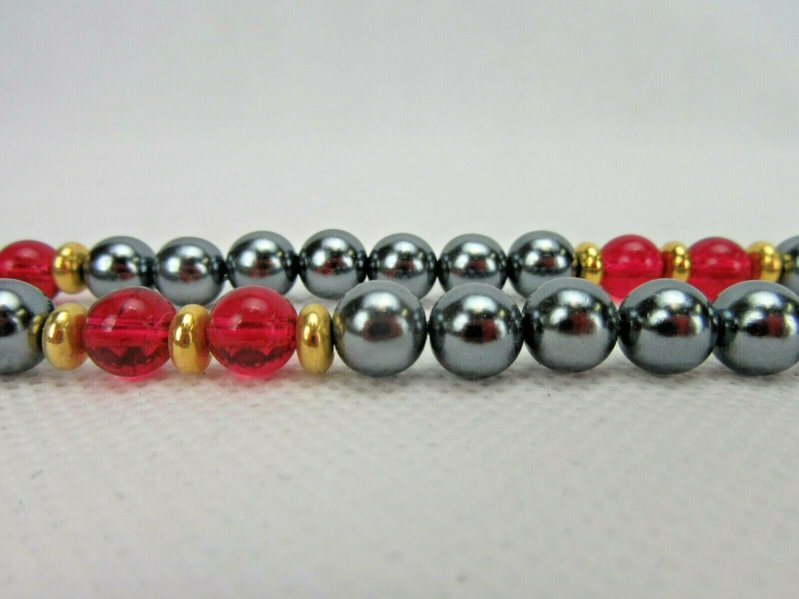 Vintage Costume Jewelry, Gray Faux Pearl, Translucent Pink Bead Necklace, NK167 Vintage Necklace