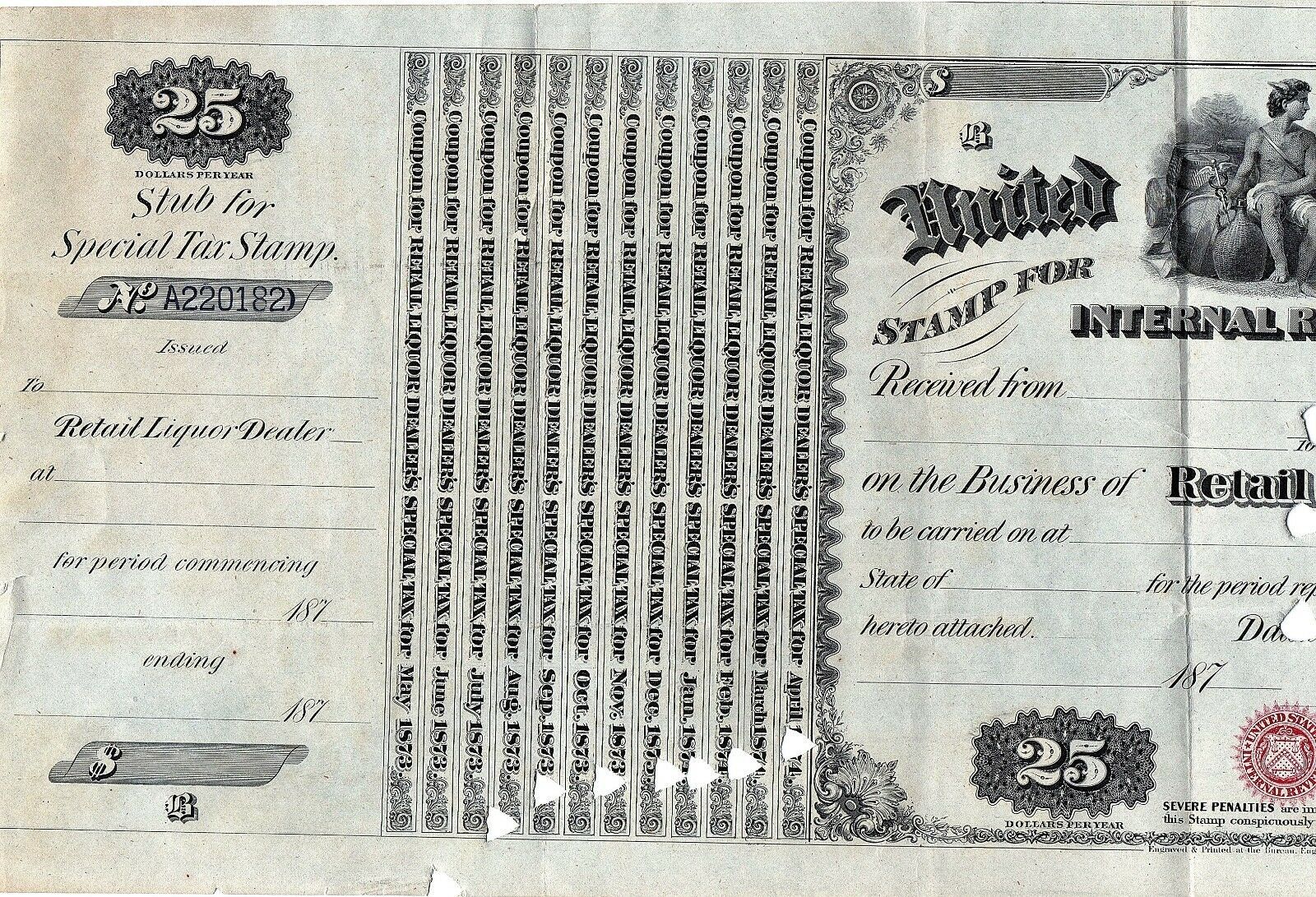1870's $25 U.S. Internal Revenue, Dealer and 50 similar items