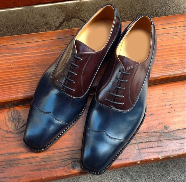 Handmade Wing Tip Leather Shoes, Men's Lace Up Navy Blue Brown Stylish Shoes