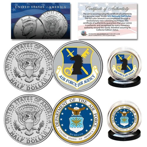COAST GUARD USCG INTELLIGENCE Branch JFK Half Dollar Armed Forces Military 2-Coin U.S. Set. The set comes with a Certificate of Authenticity to guaranty that your coins are authentic and recognized by every monetary authority around the world, assuring its Collector Edition status. Each coin comes in a premium coin capsule.