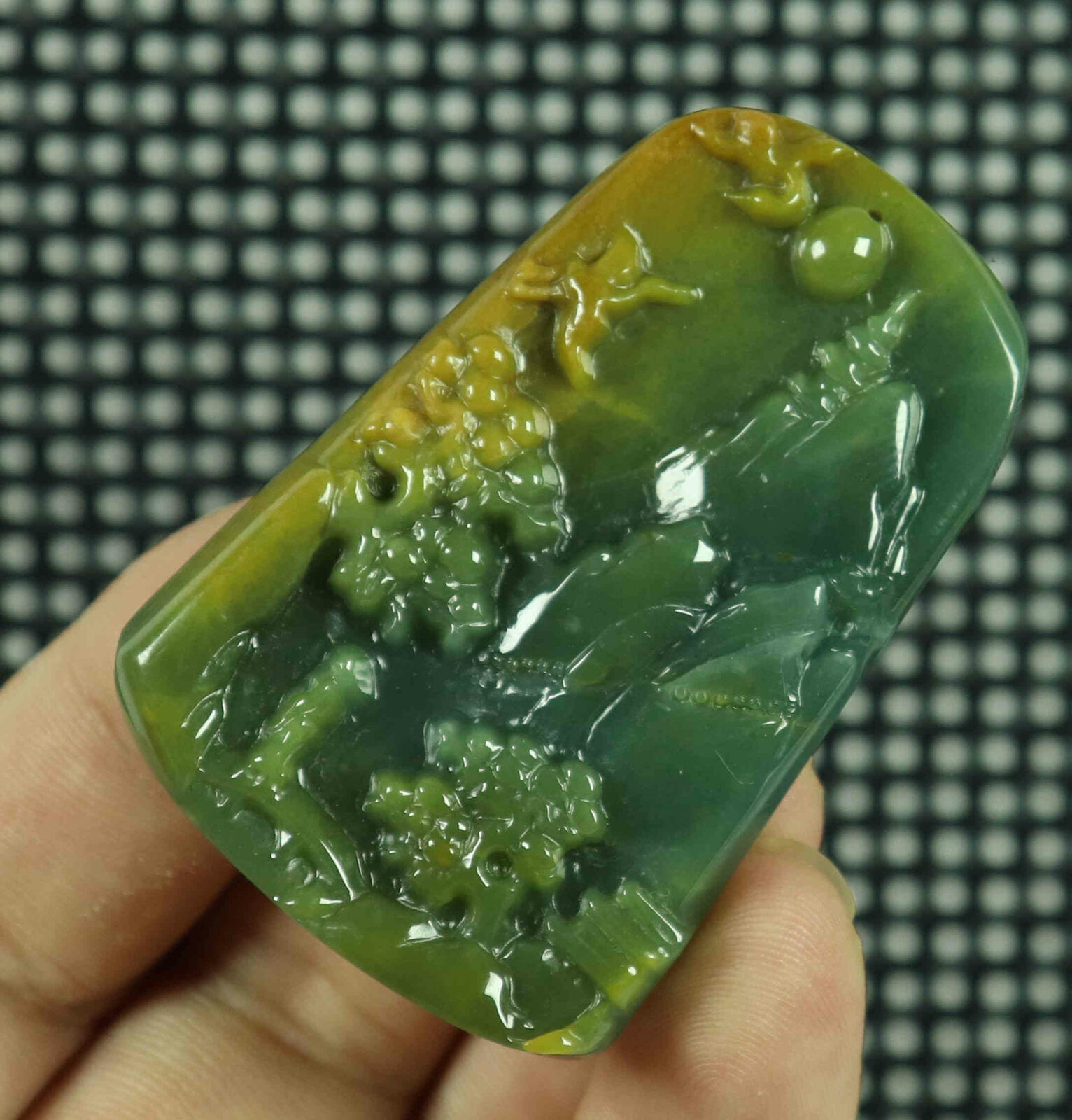 Cert'd Yellow 100% Natural A Jade jadeite Pendant Carved Landscape