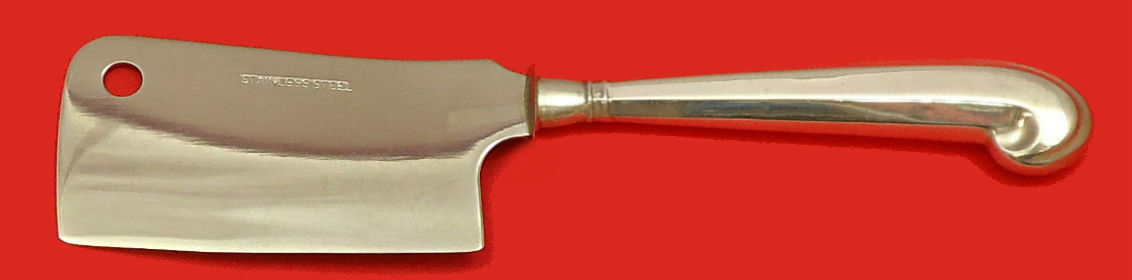 Sterling Silver CUSTOM MADE HOLLOW HANDLE WITH STAINLESS IMPLEMENT CHEESE CLEAVER APPROX. 5 1/2" in the pattern QUEEN ANNE-WILLIAMSBURG BY STIEFF. It is NOT monogrammed and is in excellent condition.