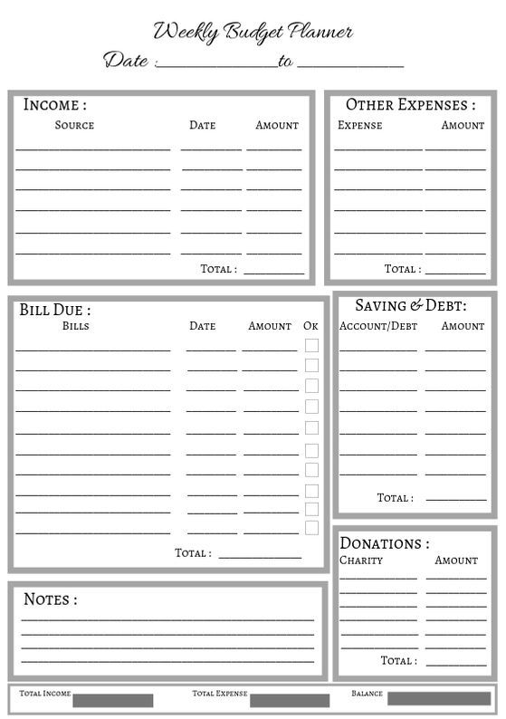 Printable Weekly, Monthly and Yearly Budget Planner,