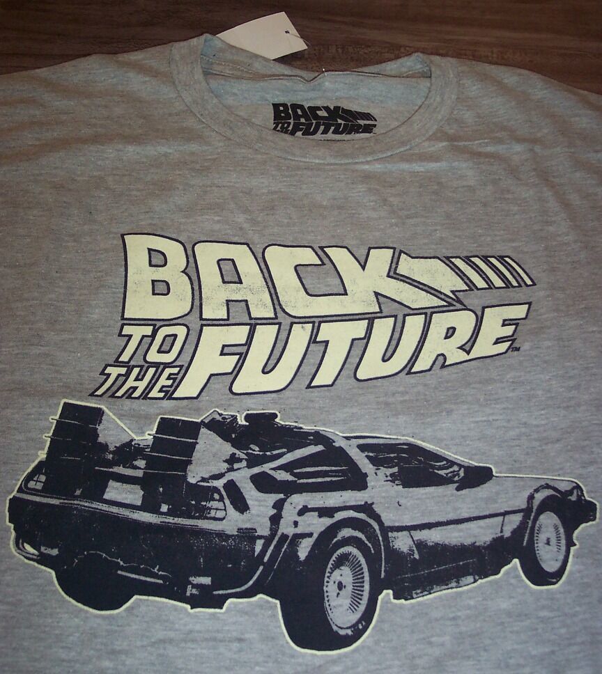 This is a BACK TO THE FUTURE DELOREAN T-shirt. It is a size SMALL, and it is NEW with the tag. It is 17 1/2 inches from armpit to armpit and 29 inches in length. The print is made to look vintage. Combine auctions to save on shipping. Winning bidder to e-mail within 3-days if not paying right away. Payment to be received within 10-days. AD
